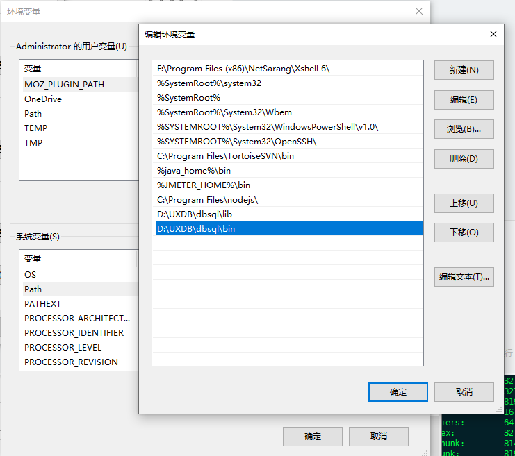 将uxdb\dbsql\bin目录添加到系统环境变量Path中。
