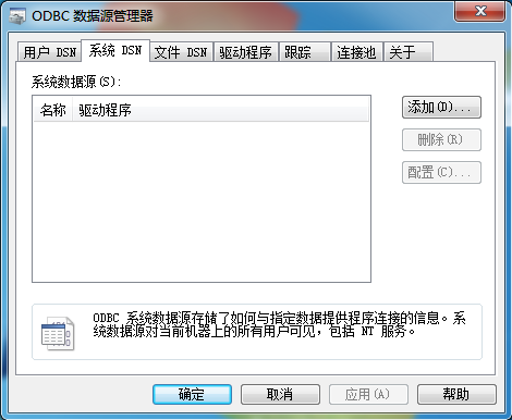 选择【系统DSN】选项卡,单击【添加(D)…】按钮,系统弹出【创建新数据源】对话框。